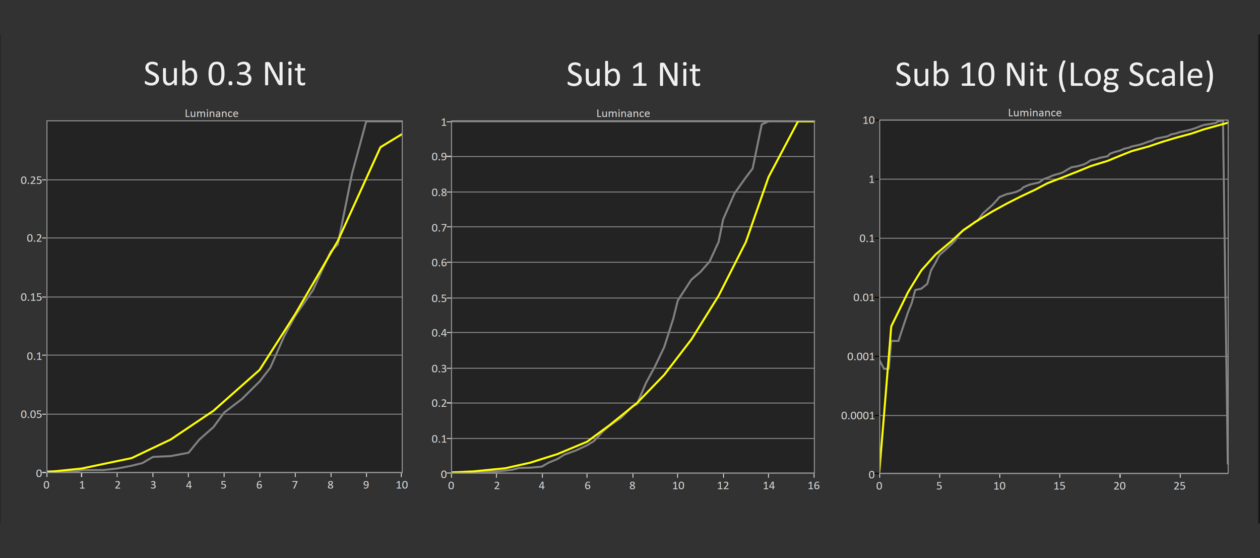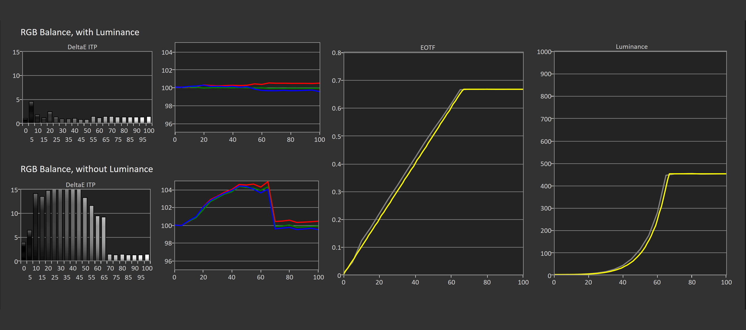 Minimum brightness was weaker than expected at 68 nits, a bit of a surprise considering the other options can push down to below 30 nits. Contrast is outstanding though, as like with other OLEDs this monitor is capable of switching off pixels to show black, leading to zero black levels and an effectively infinite contrast ratio.