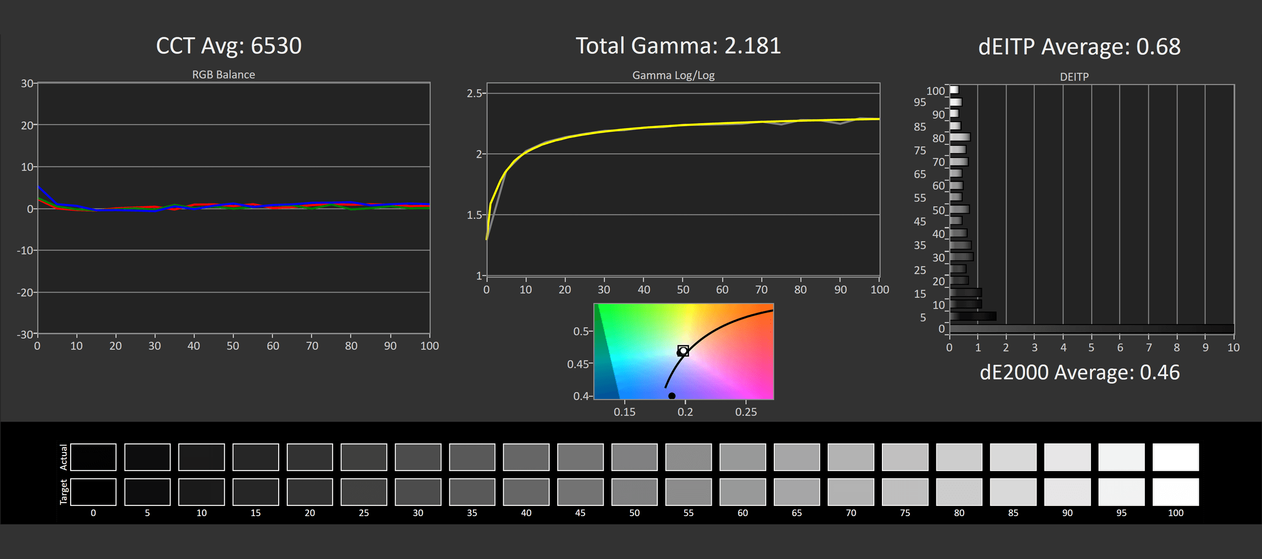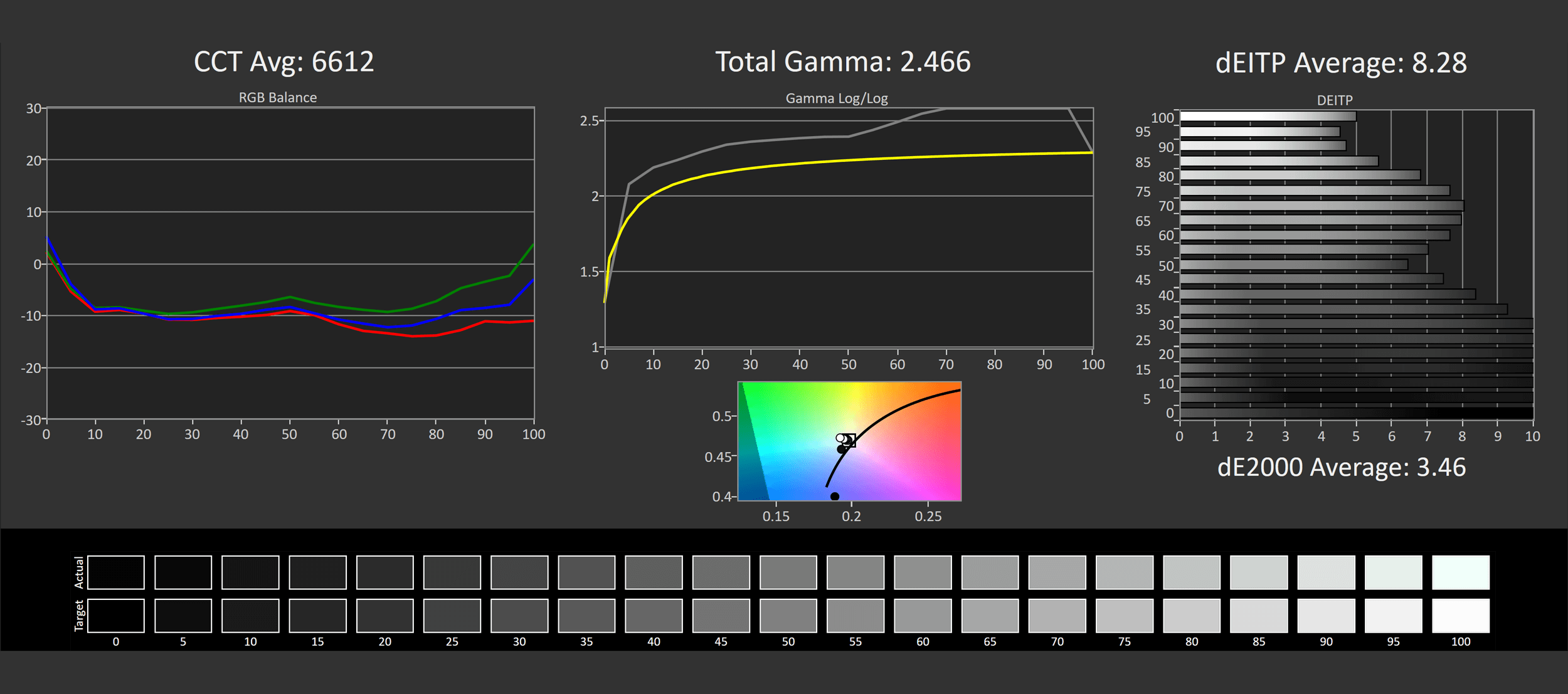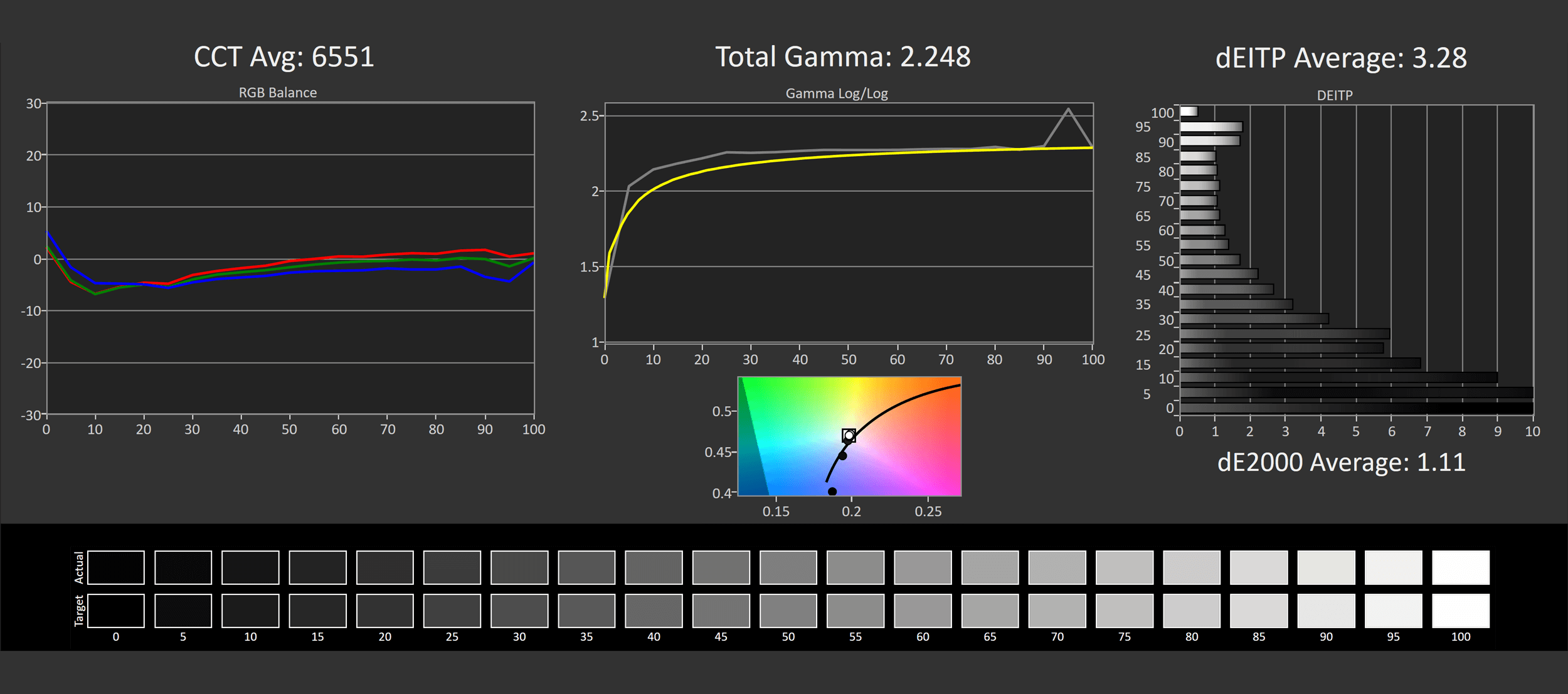 The built in sRGB mode is disappointing though. For some reason this mode changes greyscale behaviour to be less accurate, including a much worse gamma, which you then can't adjust as it locks you out of most controls. The gamut clamp aspect is effective and does a great job of improving sRGB accuracy, but the tradeoff in greyscale might not be worth it.