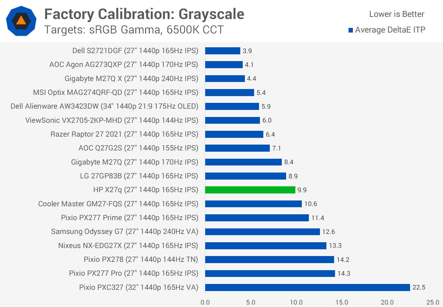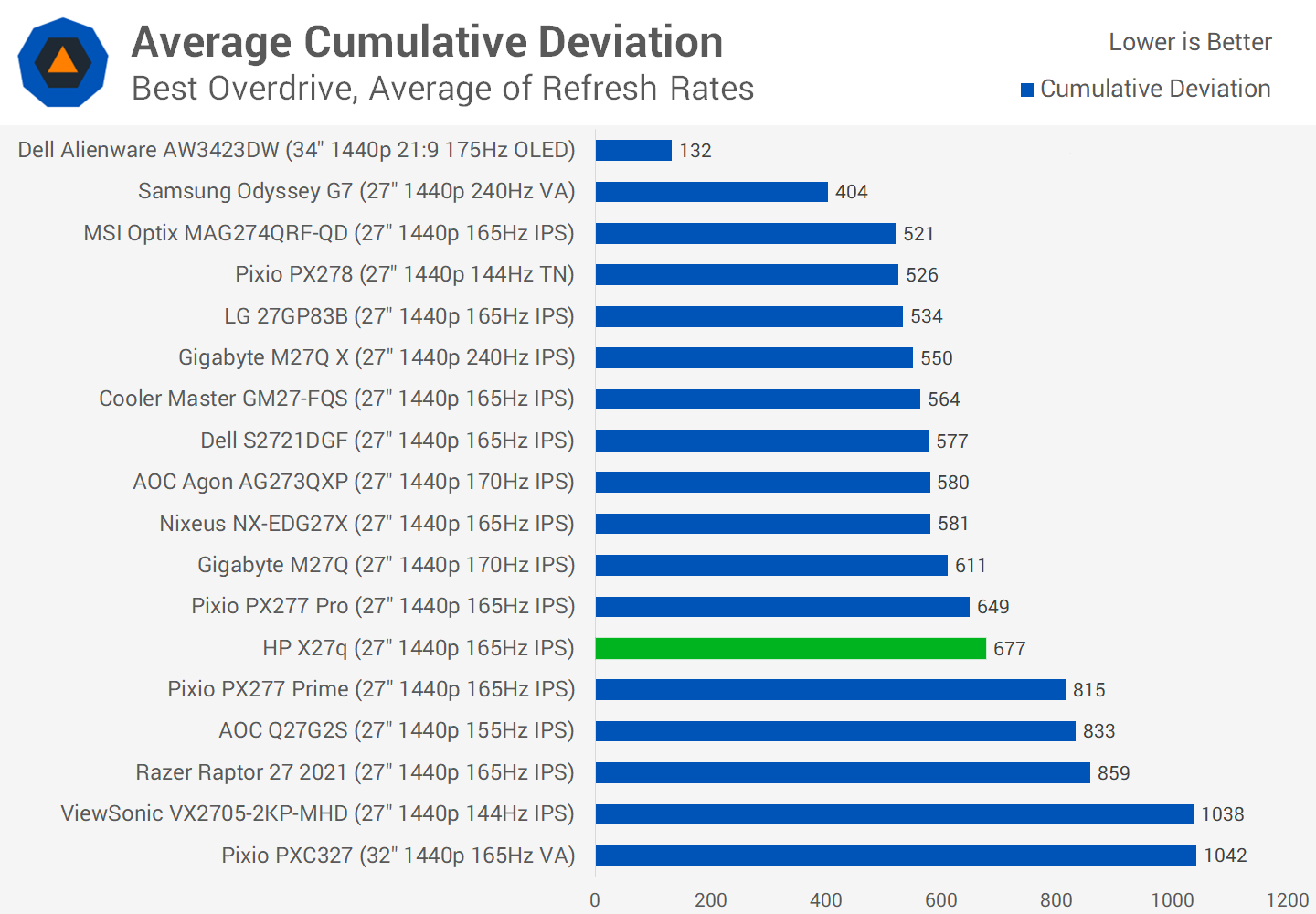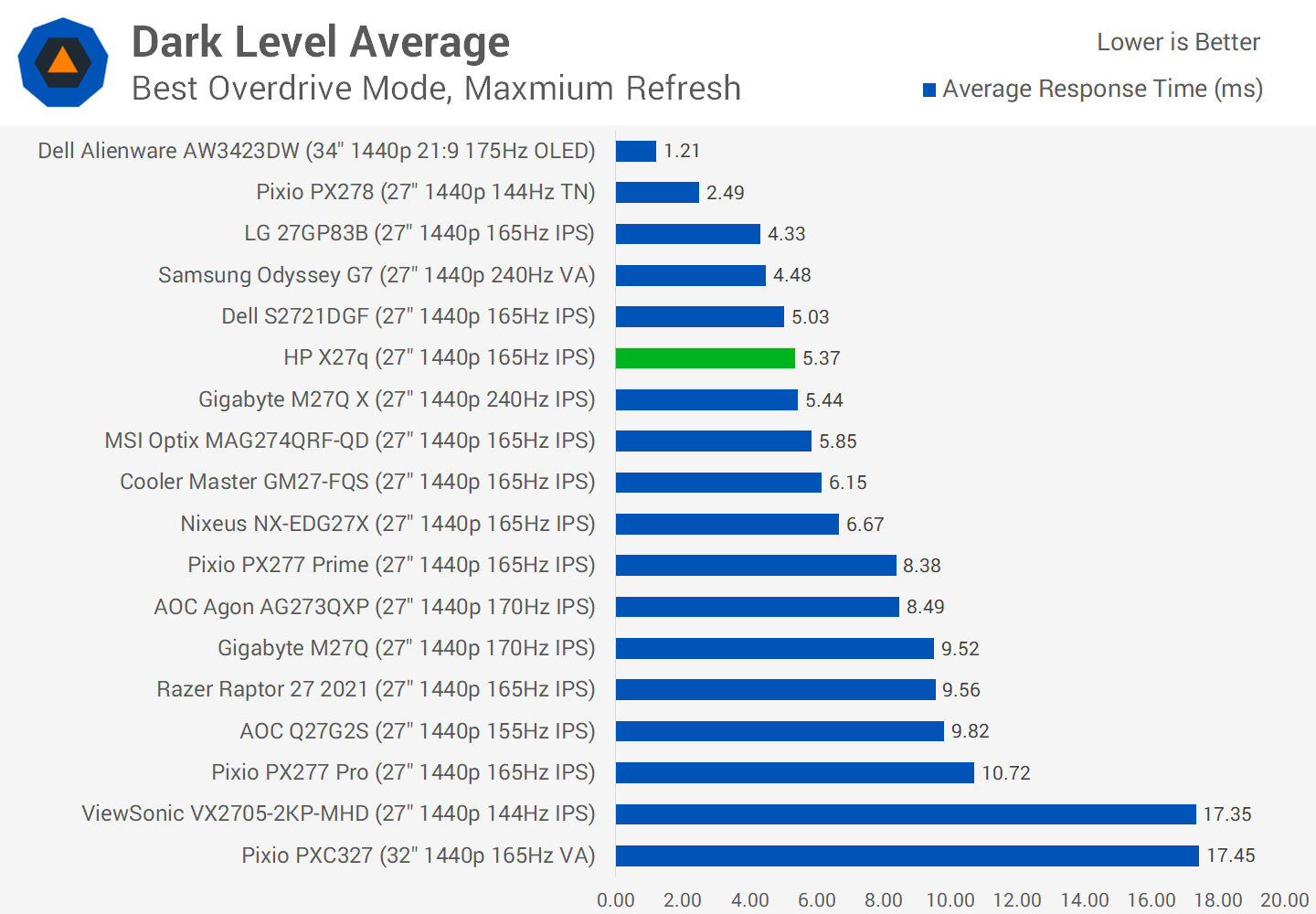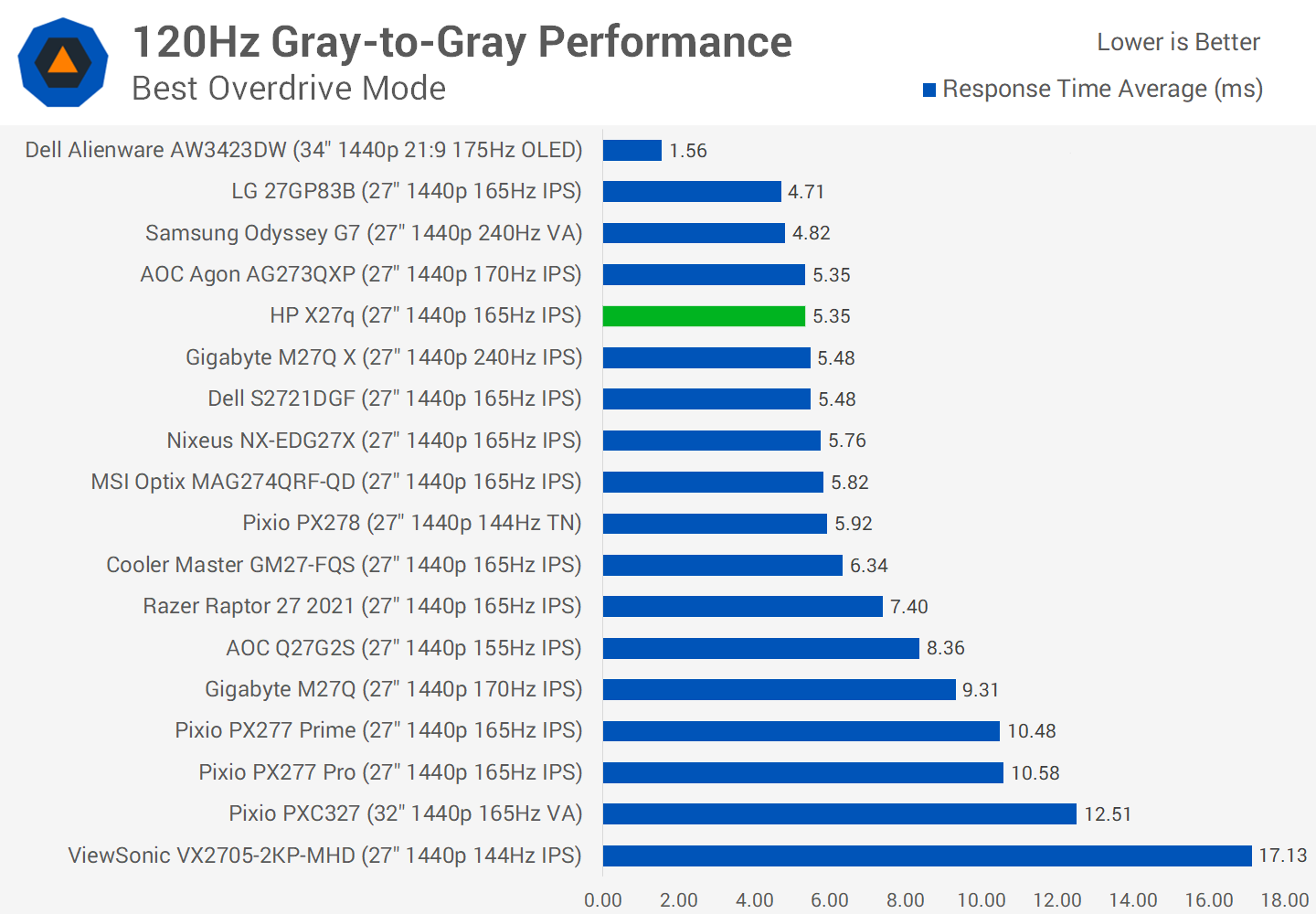 Compared to other monitors all using their highest refresh rate and optimized overdrive settings, the HP X27q performs quite well. The monitor is able to deliver a similar experience to products like the Dell S2721DGF, which we've recommended as a budget 1440p monitor in the past.