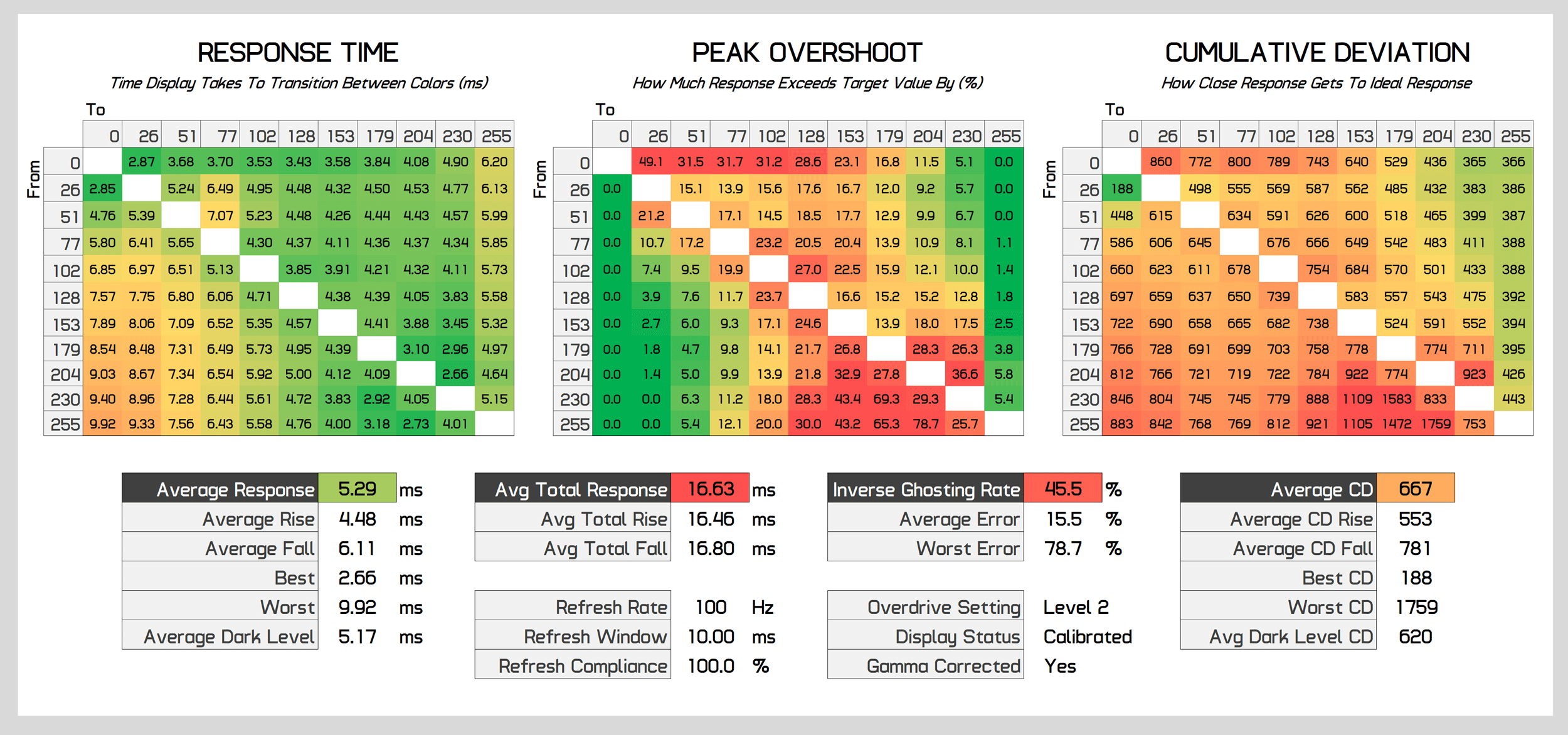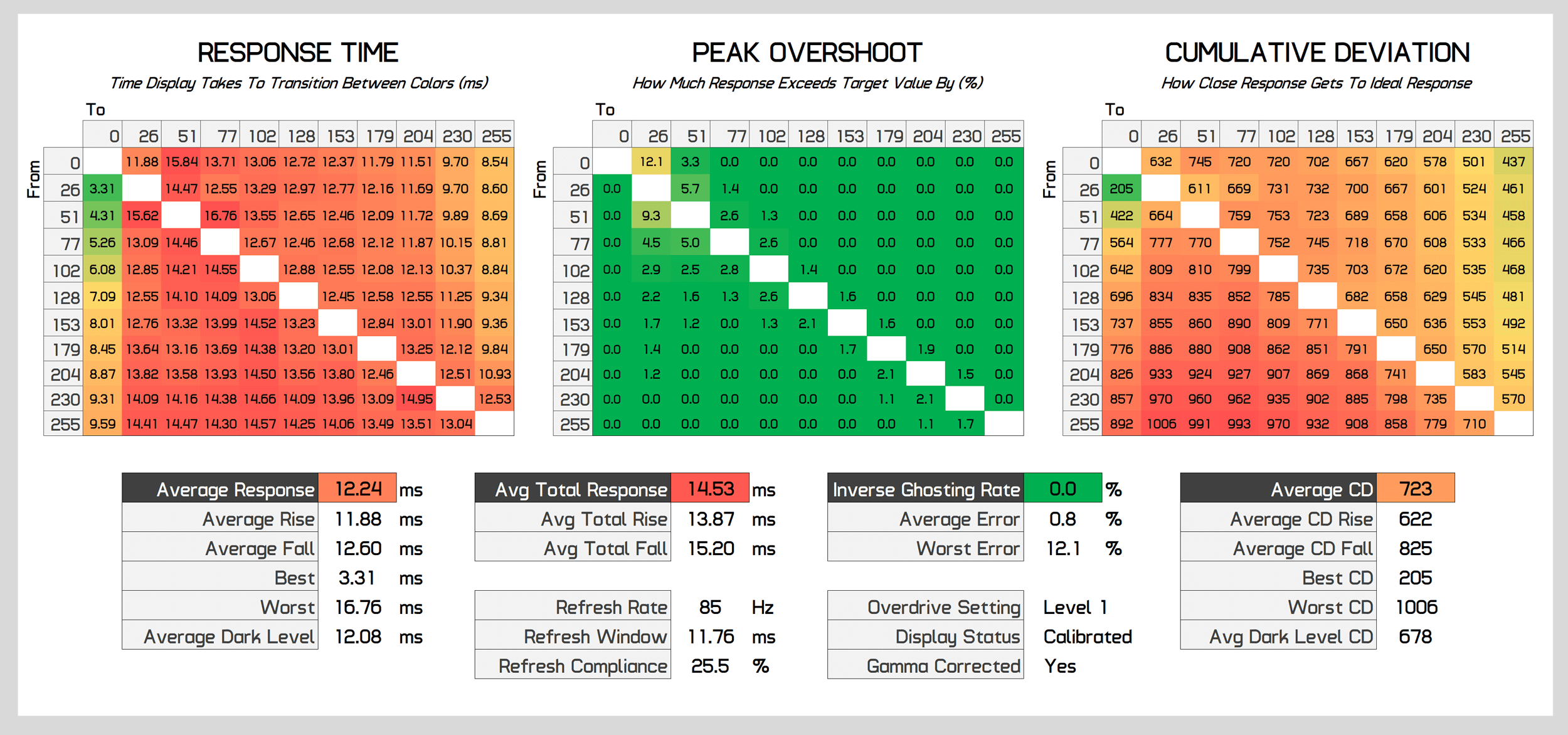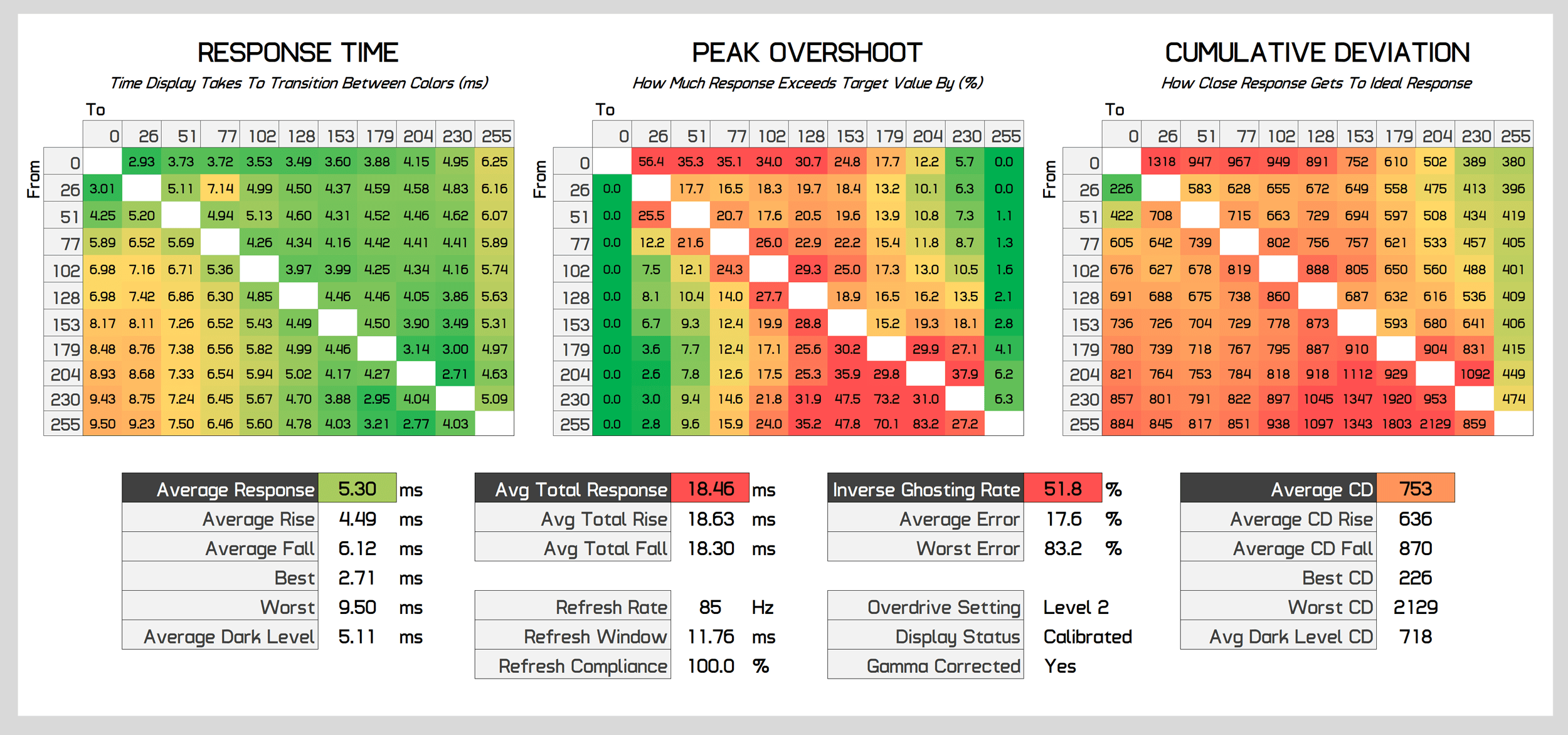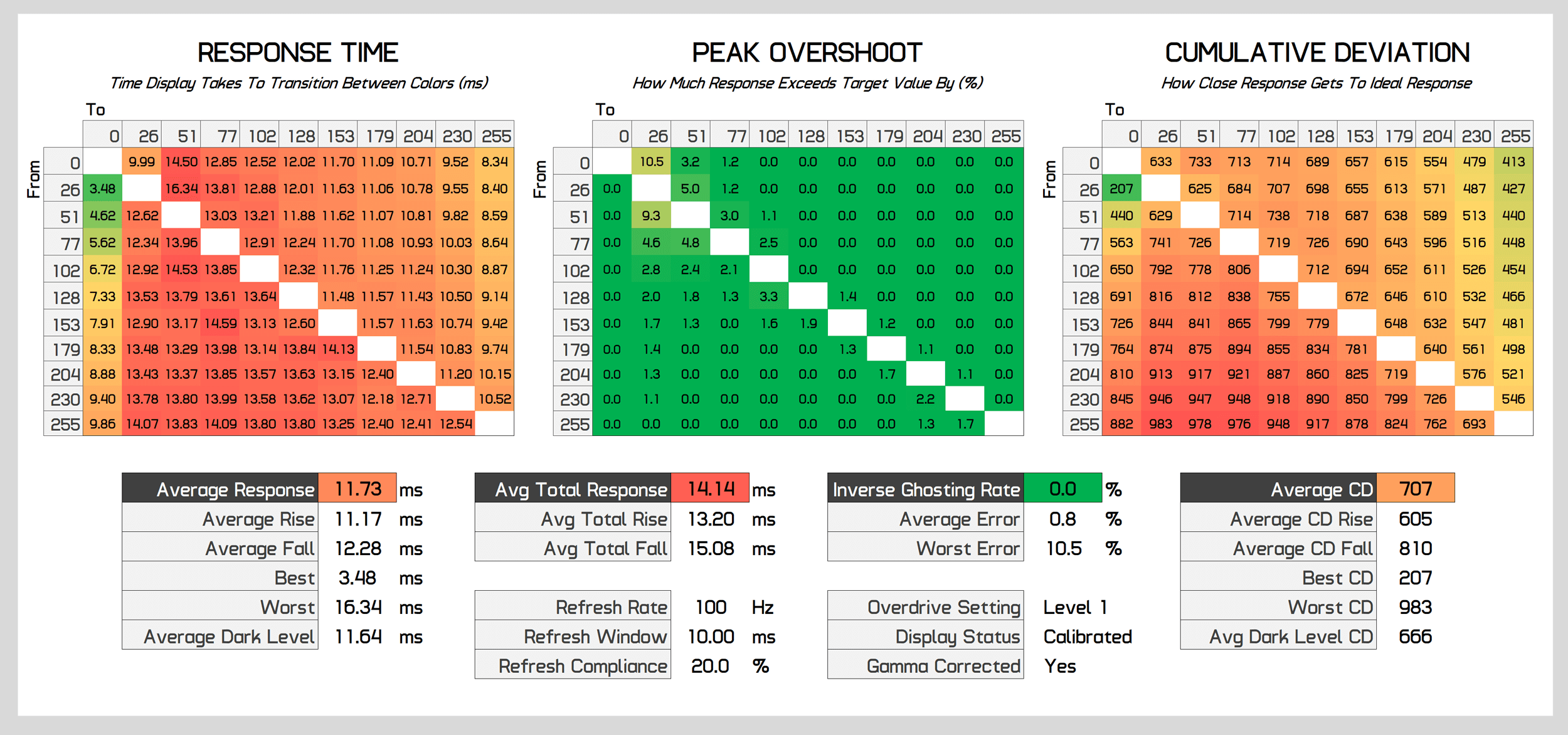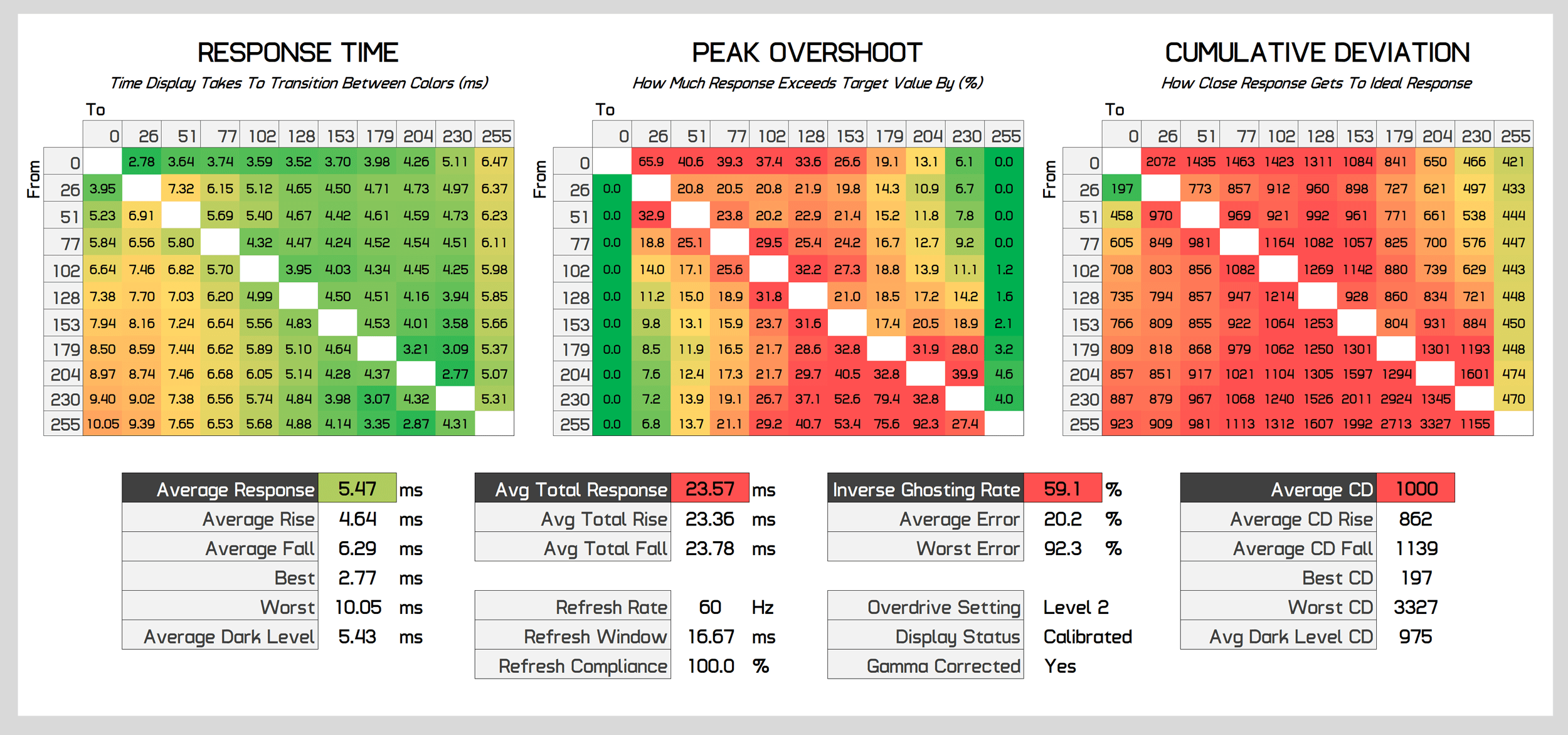 In the end, you'll need to either change between Level 1 and Level 2 overdrive depending on the refresh rate you're using, or just accept the compromises from sticking with one setting. I'd recommend Level 2 above 100Hz, and Level 1 below 100Hz - with a preference for Level 2 overall.