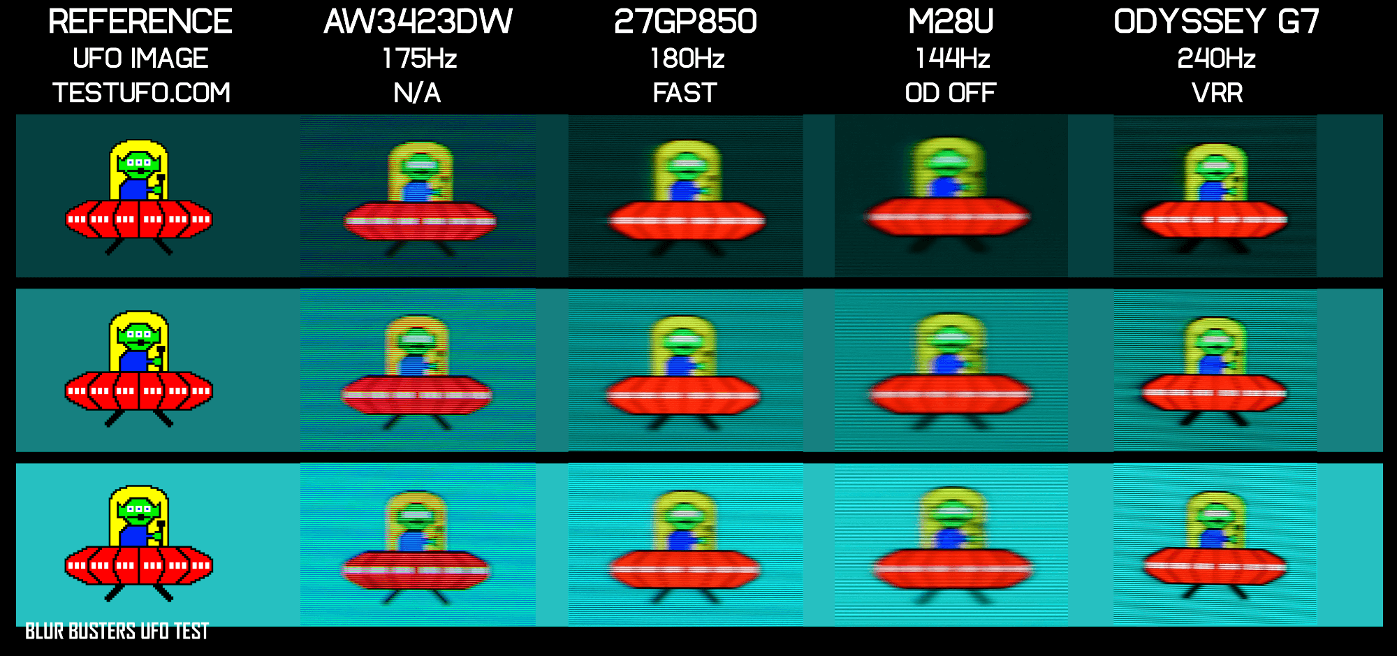The AW3423DW is 2.5x better than its nearest VA LCD competitor, and 4x better than today's fast IPS monitors. That's a huge difference that results in a significantly clearer image at the same refresh rate, with no ghost trails or inverse ghost trails to speak of. The difference compared to VA LCDs we typically see in today's ultrawides is huge and the difference side-by-side is immediately obvious.