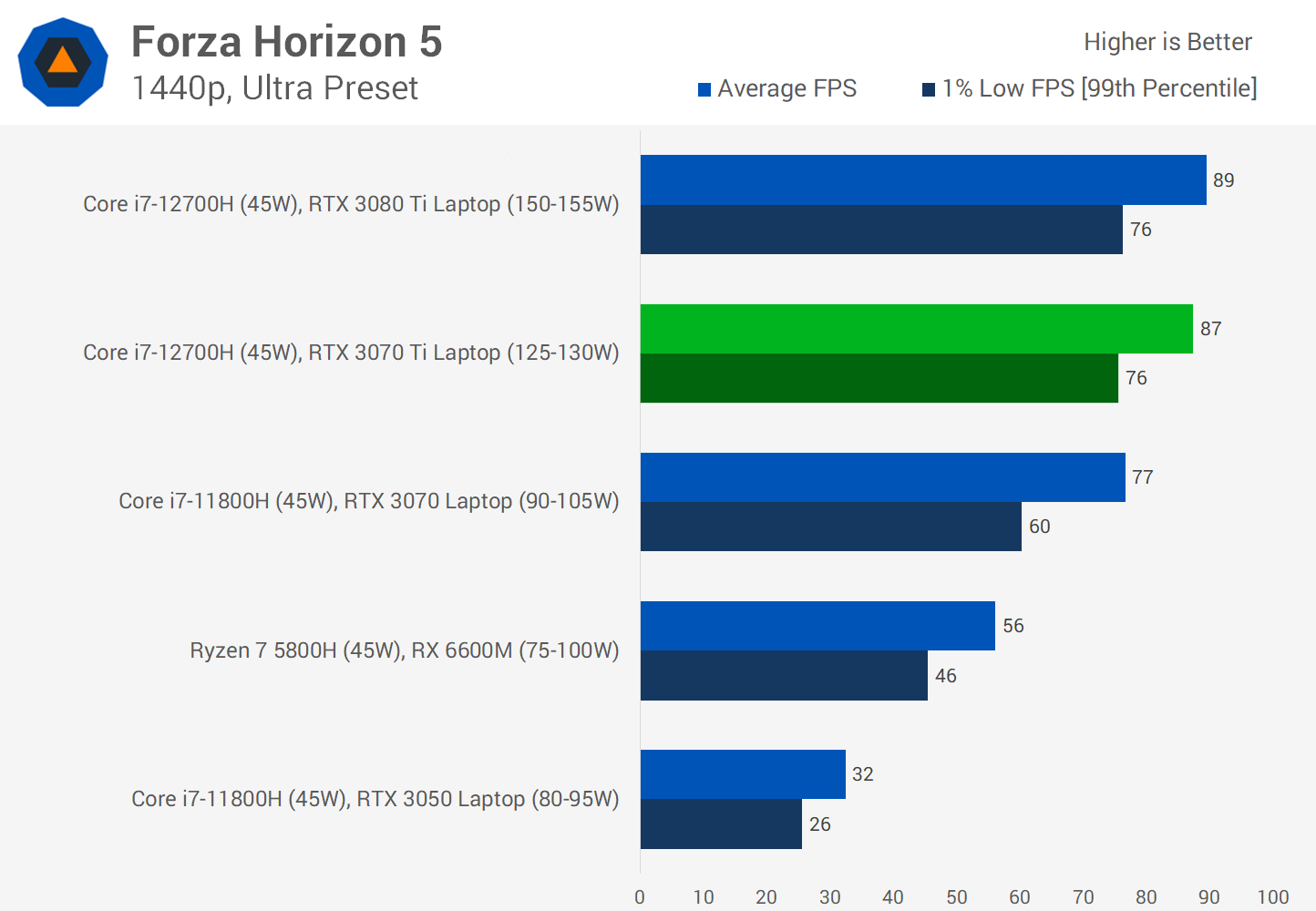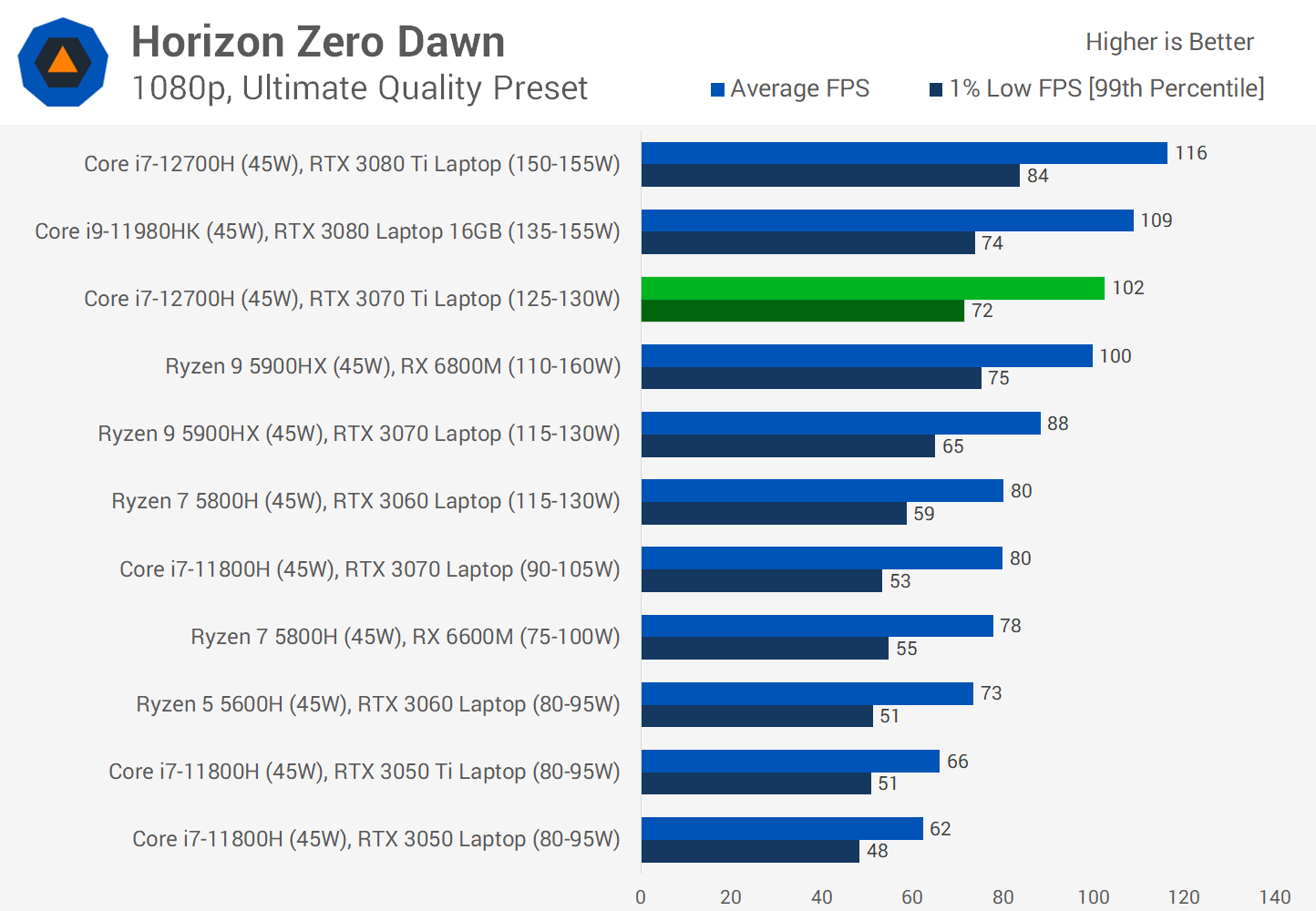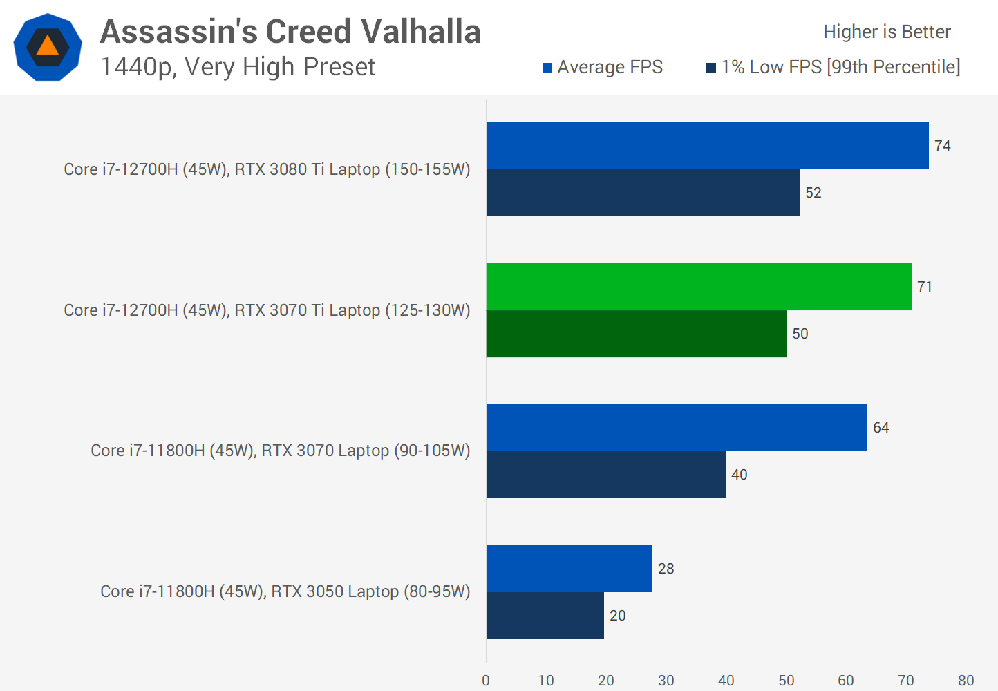 An 80W configuration in a slimmer, smaller laptop will be significantly slower than the results we show today, which are representative of higher power laptops that have more cooling capacity and usually are not as svelte or lightweight.
