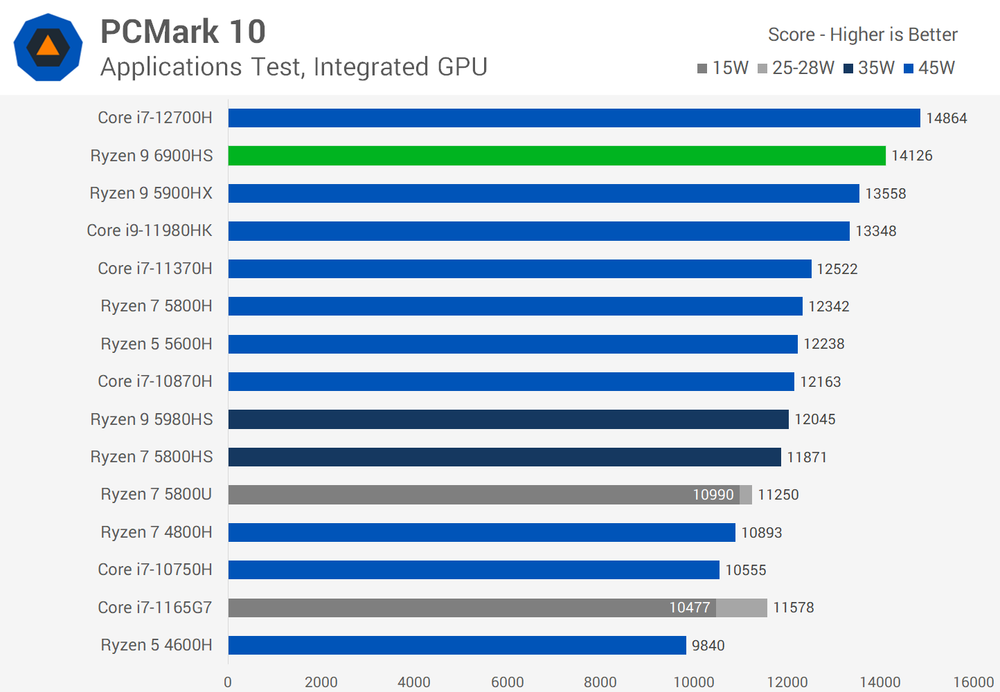 It's not an earth shattering upgrade though, as the 6900HS is still slower than Apple's highly efficient M1 Pro SoC, and 11 percent behind the Core i7-12700H, though Intel's part is more power hungry.