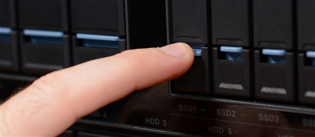 As you would expect, all 16-bays can be hot-swapped during operation. The use of individual, detachable drive trays makes adding or removing storage capacity a breeze. Interestingly, however, the drive bays can't be locked using a key for better security. There is an anti-theft K-Lock Security Slot at the rear which can prevent someone walking off with the entire device, but not the individual drives.