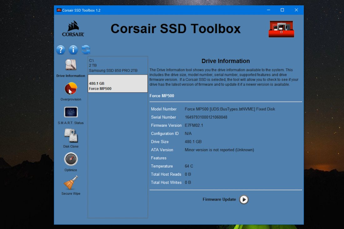 The Force MP500 series is backed by Corsair's tacky SSD Toolbox. It has to be said I'm used to seeing much more polished looking software from Corsair and I expect the SSD Toolbox to see some major upgrades in 2017. Most of the functions aren't compatible with NVMe drives at this point so MP500 owners can't view the drive's S.M.A.R.T. status or total host writes, run a secure wipe, change the overprovisioning or mess with the TRIM command settings.