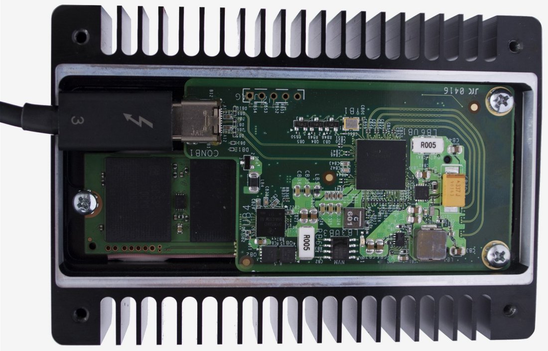 The Thunderbolt 3 controller along with the NAND flash chips and Samsung controller all feature thermal pads which transfer heat from the component to the aluminium case. During extended periods of heavy access, the enclosure does get quite warm to touch, so the Fusion design has clearly taken this under consideration.